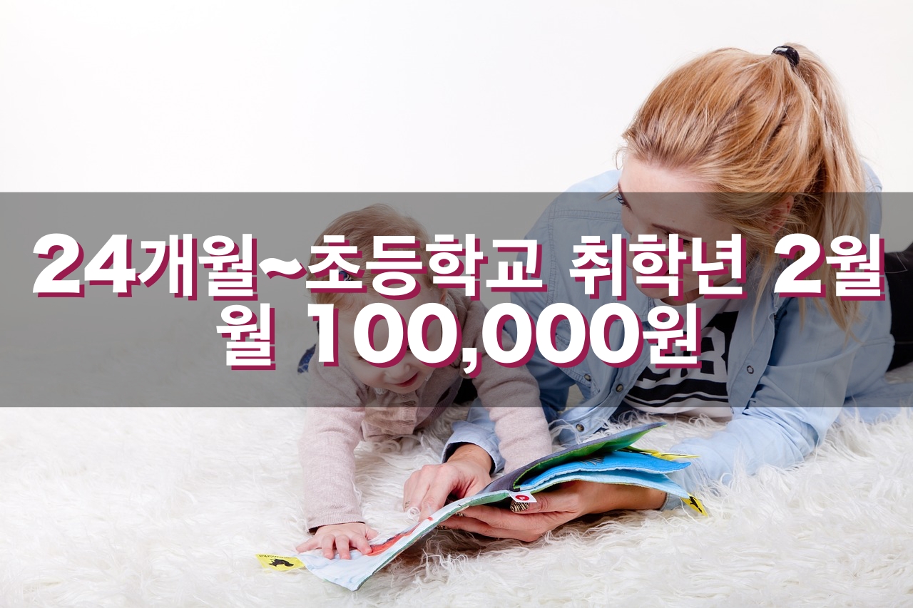 그러면 양육수당은 언제 받을 수가 있을까요. 양육수당은 부모급여가 끝나는 24개월부터 초등학교 취학년 2월까지 월 100,000원 받을 수가 있습니다.