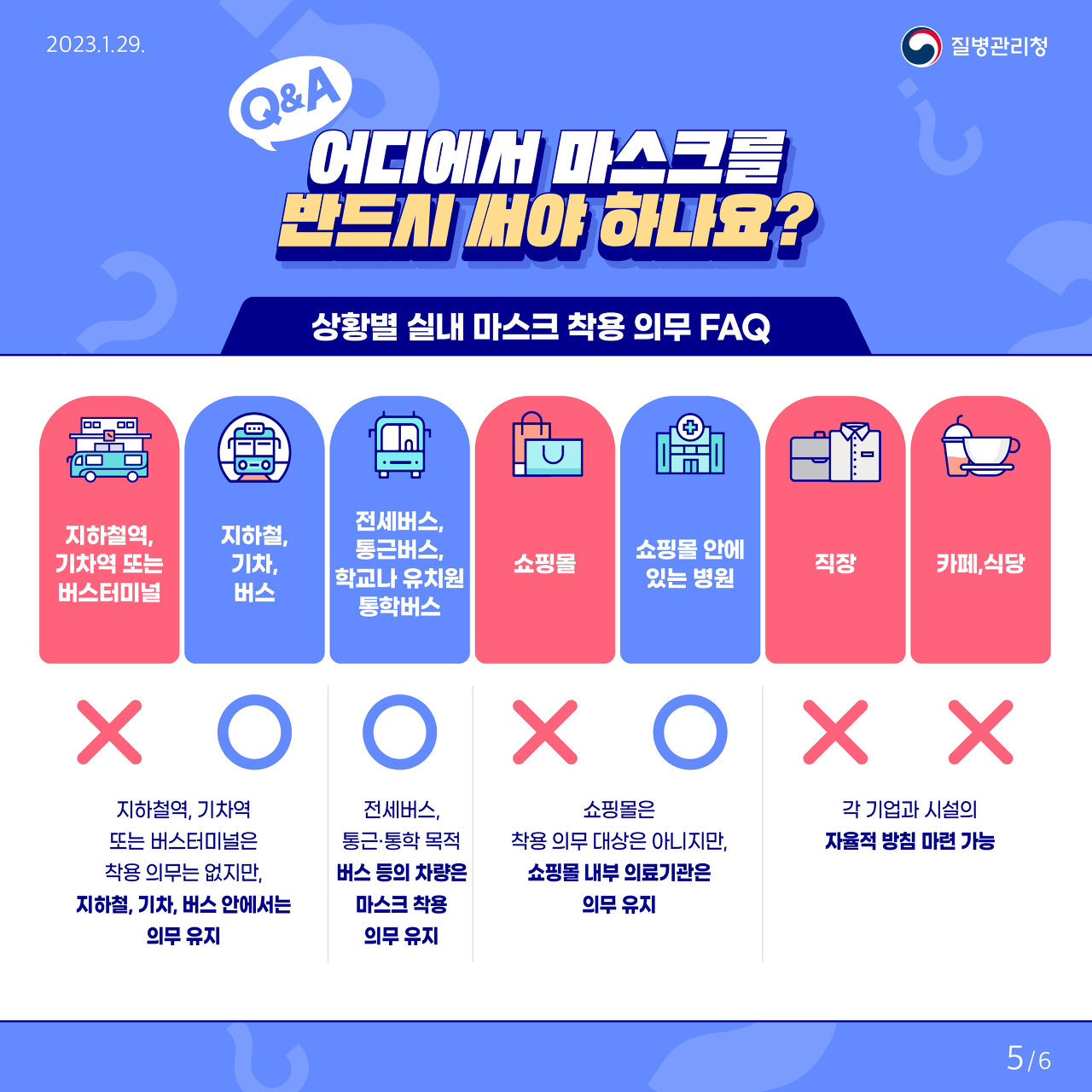 질병관리청에서 발표한 실내마스크 유지는 총 5가지입니다. 여기에 해당 되시면 마스크를 꼭 착용 하셔야 합니다.